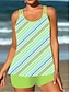 Damen Badeanzug Tankini Zweiteilig Shorts Bademode Bauchkontrolle Hohe Taille Schlank Rückenfrei Urlaub Strandbekleidung Paisley-Muster Gestreift U-Ausschnitt Ärmellos Badeanzüge