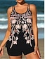 Damen Badeanzüge Tankini 2 Teilig Boyleg Badeanzug Rückenfrei Tummy Control Hochtailliert Schlank Urlaub Strandbekleidung Blumen Grafisches U-Hals Ärmellose Badeanzüge
