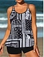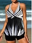 Damen Badeanzüge Tankini 2-teilig Boy Leg Badeanzug Rückenfrei Urlaub Strandbekleidung Geometrischer U-Ausschnitt Ärmellose Badeanzüge
