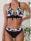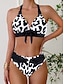 Damen Badeanzüge Bikini 2 Teile Freche Badeanzug Halter Vintage Sexy Grafik Tier Plunge Ärmellose Badesuits