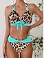Damen Badeanzug Bikini Zweiteilig Freche Unterhose Bademode Bauchkontrolle Hohe Taille Schlank Rückenfrei Urlaub Strandbekleidung Leopard Neckholder Ärmellos Badeanzüge