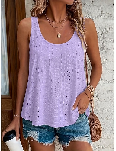 Damen Tank Top Lochmuster Einfach Mode Stilvoll Klassisch Ärmellos U-Ausschnitt Normale Oberteile Täglich Ausgehen Wochenende Blau Weiß Gelb Rosa Dunkelgrün Sommer Frühling