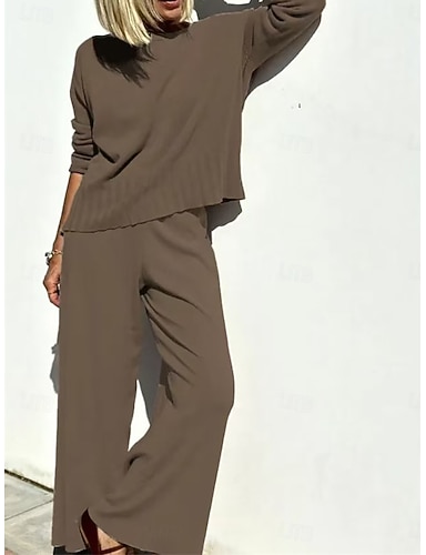 Damen Hosen-Sets Langarm Rundhals Grafik Geometrisch Druck Elegant Urlaub Mode Lässig Täglich Alltagstauglich Schwarz Dunkelpink Braun Frühling Normale Passform