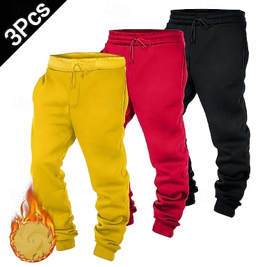 Mehrfachpackungen 3er-Pack Herren Rot+Lila+Gelb Jogginghose Jogginghose Jogger Fleecehose Kordelzug Elastischer Bund Einfach Urlaub Alltagskleidung Polyester Herbst