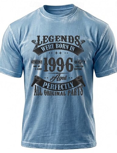 Legenden zum 30. Geburtstag – geboren 1996, perfekt gealtert, alle Originalteile. Herren-T-Shirt in Blau mit Mineralwaschung, Größen S, M, L, XL, XXL und XXXL.