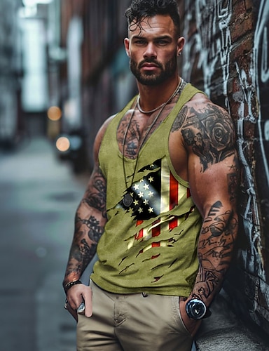 Herren Tank Top Weste Unterhemd Ärmelloses Shirt Ärmellos Rundhalsausschnitt Runden V Ausschnitt Sommer Grafik Einfach Tag der Unabhängigkeit Mode Klassisch Athleisure Schnelltrocknend Straße Lässig