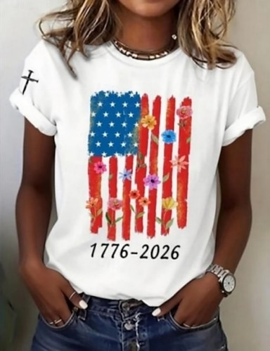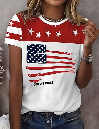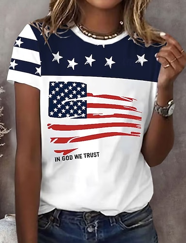 Unabhängigkeitstag Amerikanisches Jubiläum Patriotischer Damen T-Shirt Grafik Flagge Vintage Stilvoll Klassisch Kurzarm Rundhalsausschnitt V-Ausschnitt Rundhals Reguläre Oberteile Täglich Druck