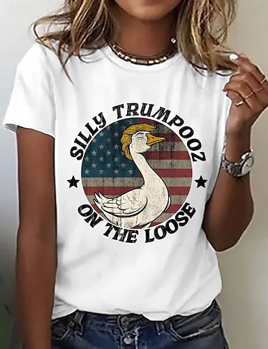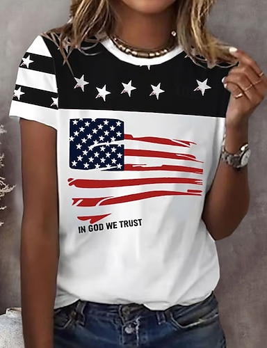 Unabhängigkeitstag Patriotisches Damen T-Shirt Graphic Flagge Vintage Stilvoll Klassisch Kurzarm Rundhals Reguläre Oberteile Alltagswochenende Druck Weiß Sommer Frühling