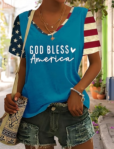 Amerikanischer Unabhängigkeitstag Damen T Shirt T-Shirt Druck Grafik Amerikanische Flagge Stilvoll Klassisch Lässig Kurzarm V Ausschnitt Normale Oberteile Täglich Wochenende Strandbekleidung Blau