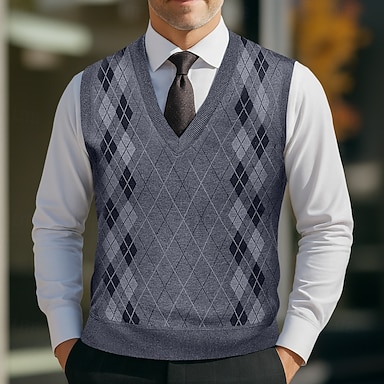 Herren Pullunder Pullover Kleid Pullover Strickpullover Gerippt Gedrehtes Stricken Standard Strick Glatt V Ausschnitt warm halten Moderne zeitgenössische Freizeitskleidung Ausgehen Bekleidung Herbst
