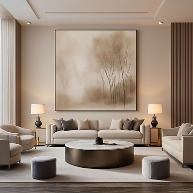 Handgemaltes Leinwandbild, Wandbild, ruhige, neblige Landschaft mit kahlen Bäumen in Sepiatönen, realistische Illustration, dekorativer Winterwald für das Wohnzimmer