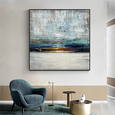 Handgefertigt Ölgemälde Handgemalte Quadrat Abstrakt Landschaft Zeitgenössisch Modern Ohne Innenrahmen (ohne Rahmen)