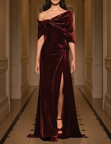 Meerjungfrauenschnitt Bodenlang Abiballkleider Abendkleid Ballkleid Festliche Kleidung Elegant Glitzernd Promi-Stil Dreiviertelarm Schulterfrei Formell Hochzeit Samt mit Gerafft