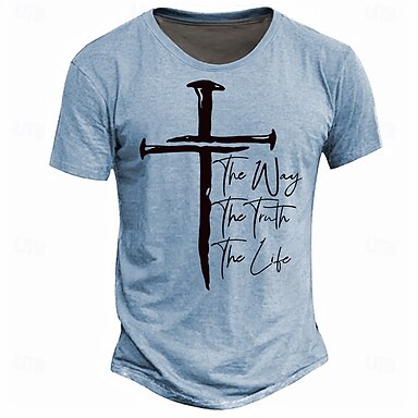Herrenbibel Jesus Christliches T-Shirt Kurzarm T-Shirt 3D Druck Rundhals T-Shirt Designer Lässig Party Feiertag Blau Khaki Grau Sommer Frühling Kleidung