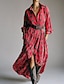 Damen Normal Maxikleid Leinen-inspirierte Kleider Stilvoll Lässig Urlaub Täglich Normale Passform Grafik Langarm Rundhalsausschnitt Rote Grün Grau Frühling Herbst