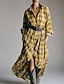 Damen Langes Kleid Maxikleid Kariertes Kleid Hemdblusenkleid Vintage Modern Outdoor Urlaub Ausgehen Lässiger Schnitt Karomuster Langarm Hemdkragen Gelb Rote Frühling Herbst