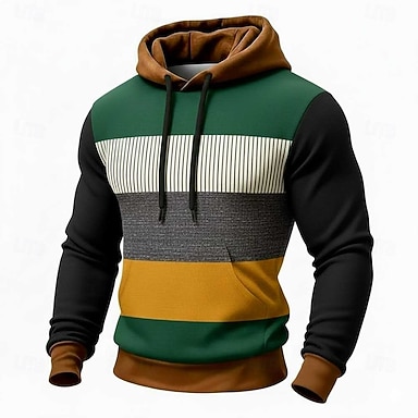 Herren Geometrisch Karomuster Kapuzensweatshirt Pullover Mode Täglich Rundhalsausschnitt Heim Streetwear Party Blau Braun Grün Kordelzug Herbst Winter Designer S M L XL XXL XXXL