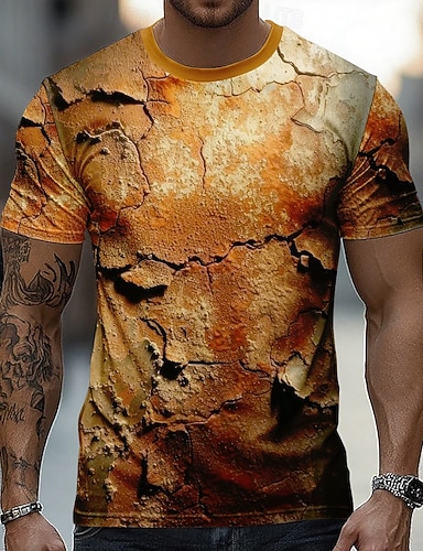 Herren Optische Täuschung 3D T Shirt Kurzarm T-Shirt 3D-Druck Rundhalsausschnitt Hemd Übertrieben Retro Vintage Vintage-Retro Party Straße Lässig Gelb Braun Grün Sommer Frühling Ganzjahres Bekleidung