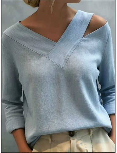 Damen Hemd T Shirt Bluse Mode Langarm V Ausschnitt Normale Oberteile Lässig Strand Blau Weiß Rote Grün Schwarz Sommer