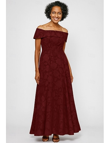 A-Linie Bodenlang Abendkleid Ballkleid Elegant Vintage Blumen Kurzarm Rundhalsausschnitt Gartenparty Hochzeit Tasche Jacquard Tiefer Wasserfall-Rückenausschnitt mit Schlitz Tasche