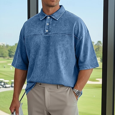 Herren Acid-Wash-Shirt Lässig Geschäft Gerippter Polokragen Kurzarm Mode Basic Einfarbig Farbblock Knöpfe Gewaschen Sommer Frühling Frühling & Herbst Lässiger Schnitt Schwarz Hellgrün Rosa Marineblau