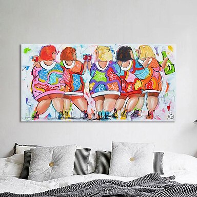 Handgefertigtes Ölgemälde auf Leinwand, Wandkunst, Dekoration, moderne Zeichentrickfiguren, 5 fette Mädchen für Wohnkultur, gerolltes, rahmenloses, ungedehntes Gemälde