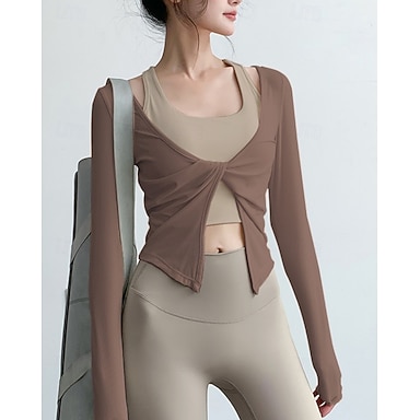 Damen 2 Stück Yoga T-shirt T-shirt Fitness Rundausschnitt Hautfreundlich Leicht Bequem Geschichtet Langarm Sport Einfarbig Oberteil Für Fitnesstraining Laufen Fitness Sportkleidung