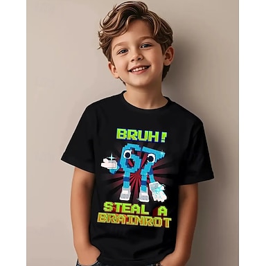 Baumwolle Kinder Jungen Schwarz Grafik Lustiger Slang 67 T-Shirt Bluse Rundhalsausschnitt Kurzarm Outdoor Alltagskleidung Mode Streetwear Designer Drucken Sommer