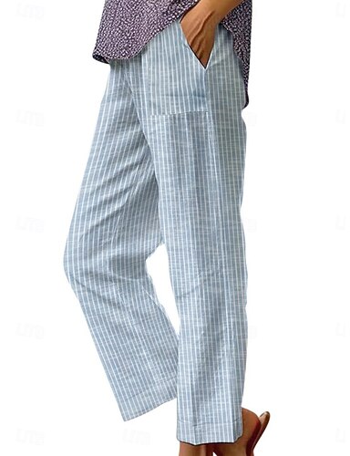 Damen Kunstbaumwollleinen Weites Bein Freizeithose Sommerhose Urlaub Mode Streetwear Volle Länge Mittlere Taille Gestreift Tasche Elastischer Bund Druck Bequem Atmungsaktivität Unelastisch Täglich