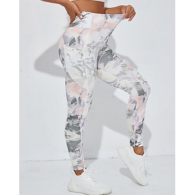 Damen Capri Leggings Yoga-Leggings Mit Taschen Bauchkontrolle Hohe Taille Fitnessstudio sportlich Pilates Unterteile Druck Weiß Herbst Sport Sportkleidung Enge Passform