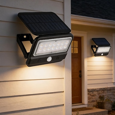 Solarbetriebene, wasserdichte LED-Wandleuchte mit Bewegungsmelder (IP65), superhell, für Garten, Terrasse, Hof, Zaun, Veranda, Einfahrt, mit 3 Leuchtmodi &3 Farbtemperaturen