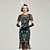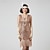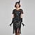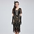 Set Vintage inspiriert Der große Gatsby Knöchellänge Lange Länge Kleid Outfits Partykostüm mit Zubehör Illusionsärmel Kurze Ärmel Der große Gatsby Hochzeitsgast Pailletten Pailletten Halloween V