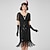 Set Goldene Zwanziger 1920er Cocktailkleid Knöchellänge Kleid Outfits Abschlussballkleid mit Zubehör Kurze Ärmel Der große Gatsby Übergrössen Hochzeitsgast Quastenfransen Quaste V Ausschnitt Kostüm