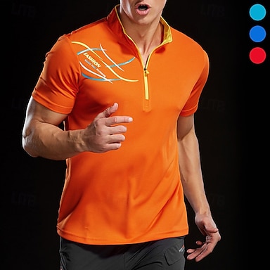 Herren T-Shirt Wander-T-Shirt Kurzarm Viertelreißverschluss T-Shirt Muskelshirt Kurzarmhemd Außen Schnelltrocknend Training Weich Schweißableitend Sommer Frühling Polyester Rot Blau Orange