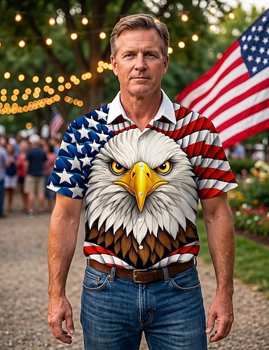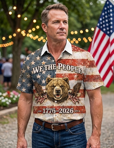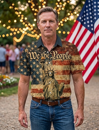 Bluse / Hemd Geometrisch Amerikanische Flagge Tag der Unabhängigkeit Retro Vintage 1970er Kurze Ärmel für Herren Erwachsene für 4. Juli Party Unabhängigkeitstag