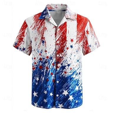 Herren 250. Jahrestag des Unabhängigkeitstages der USA am 4. Juli Freiheitsstatue US Flagge Hemd Knopfhemd Kurzarm Patriotisch Outdoor Ferien Sommer Frühling Umlegekragen 3D-Druck Hemden mit Kragen