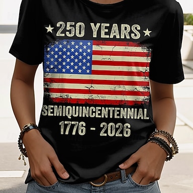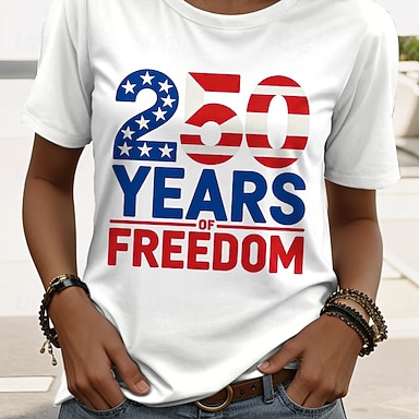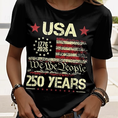 Unabhängigkeitstag Patriotische Frauen T-Shirt Druck Grafik Buchstabe Stylisch Klassisch Lässig Kurzarm Rundhals Reguläre Tops Alltag Blau Schwarz Weiß Rot Sommer Frühling