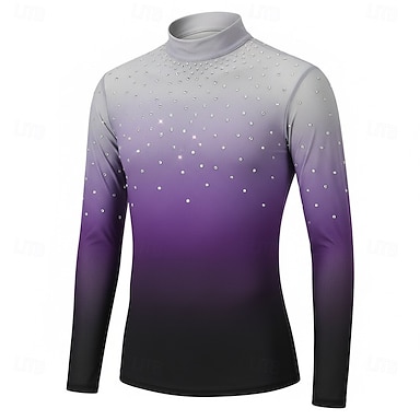 Eiskunstlauf Top Herren Eislaufen Oberteile Violett Patchwork Halo-Färbung Dehnbar Training Wettbewerb Eiskunstlaufkleidung Klassisch Kristall / Strass Langarm Eislaufen Eiskundstlauf