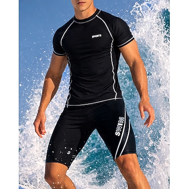 Herren Regulär 2-teiliger Rashguard Surfshirt Badeshorts Patchwork Knielanges Bein UV-Sonnenschutz Schnelltrocknend Atmungsaktiv Kurzarm Bademode Surfen Wassersport Schwimmen Sommer
