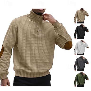 Herren Sweatshirt Waffel-Sweatshirt Pullover Kapuzensweatshirt Pullover Kapuzenpullover mit Knöpfen Schwarz Weiß Armeegrün Khaki Grau Stehkragen Einfach Patchwork Strukturiert Sport & Outdoor Lässig
