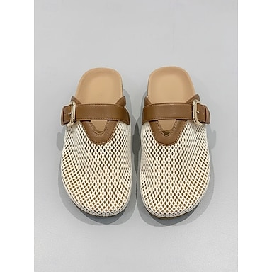 Beigefarbene Damen-Mules aus Mesh – atmungsaktive, bequeme Slipper mit Schnallenriemen, leichter, rutschfester Sohle, lässige Schuhe für Reisen, Gartenarbeit und den Alltag