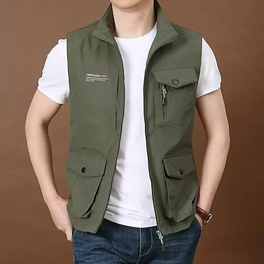 Herren Outdoor-Weste Weste Angelweste Outdoor Täglich Mode Lässig Frühling Herbst Tasche Nylon Bequem Buchstabe Reisverschluss Stehkragen Normale Passform Schwarz Königliches Blau Khaki Armeegrün