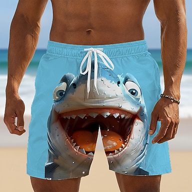 Herren Hai Lustig Comic-Tiere Badehosen Badeshorts Boardshorts Mittlere Taille Hawaiianisch Strandurlaub Seitentaschen Netzfutter Elastischer Kordelzug in der Taille Designer Bekleidung