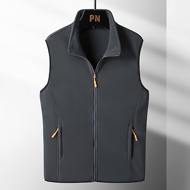 Herren Fleece-Weste Polarfleece Weste Freizeitskleidung Ausgehen Festival Sport Basic Herbst Winter Zip Tasche Polyester warm halten Einfarbig Reisverschluss Stehkragen Regular Fit Hellblau Schwarz