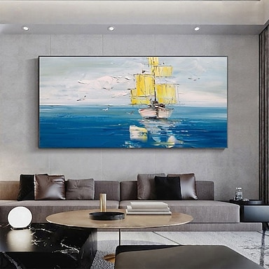 Ölgemälde, handgefertigt, handgemalt, Wandkunst, modernes abstraktes Segelboot, Landschaft, Heimdekoration, Dekor, gerollte Leinwand, kein Rahmen, ungedehnt