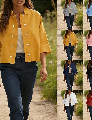 Damen Hemd Baumwoll-Leinen-Hemden Leinenhemd Knopfleiste Knöpfe Einfach Täglich Stilvoll Basic Langarm Hemdkragen Normale Oberteile Täglich Arbeit Ferien Schwarz Weiß Khaki Frühling Herbst