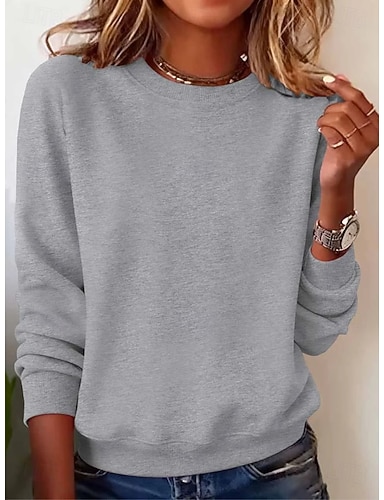 Damen Pullover Sweatshirt Druck Grafik Lässig Langarm Rundhalsausschnitt Normale Oberteile Lässig Straße Ferien Hellblau Schwarz Weiß Gelb Dunkelpink Frühling Herbst Winter