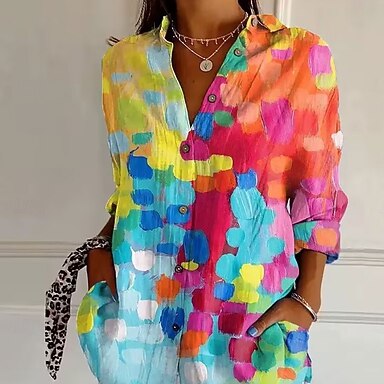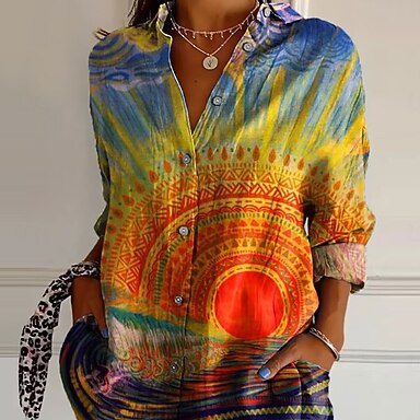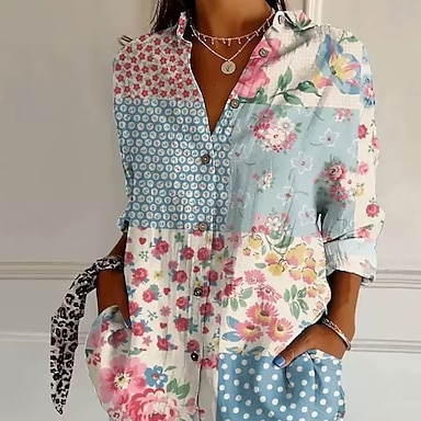 Damen Shirt Leinenähnlich Atmungsaktiv Leicht Button Down Tunika Shirt Kragen Lange Ärmel Floral Lässig Regelmäßige Oberteile Arbeit Alltag s Druck Gelb Frühling Herbst Winter
