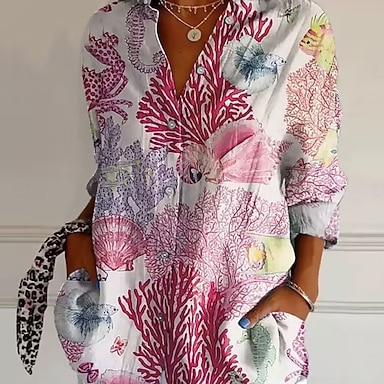 Damenshirt Button-Down Bluse Ombre Floral Grafik Bohemia Vintage Alltag 3/4-Länge Ärmel V-Ausschnitt Reguläre Oberteile Tägliche Urlaub Strandbekleidung Druck Lila Grün Rose Pink Sommer Frühling