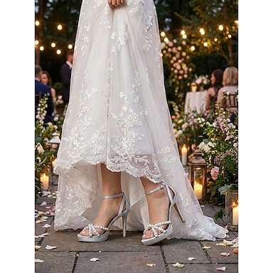 Silberne Perlen-Sandalen mit Knöchelriemen und hohem Absatz für Damen, elegante Brautschuhe für Hochzeiten in der Stadt